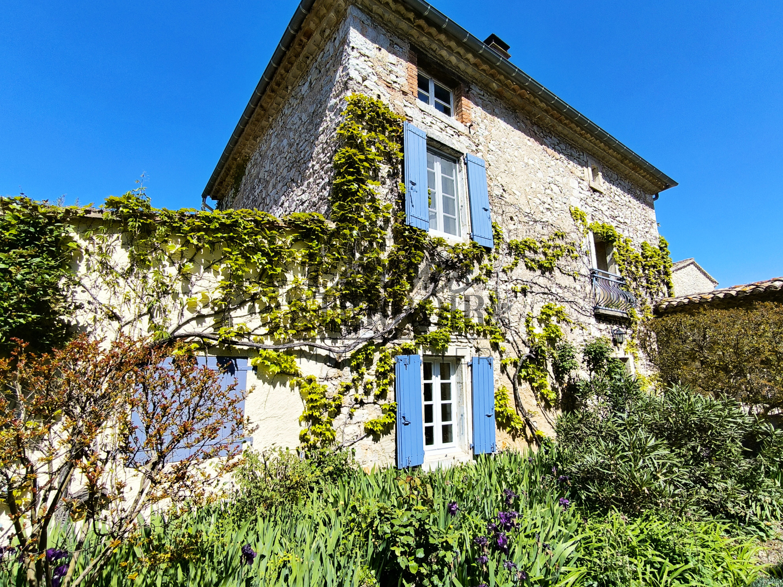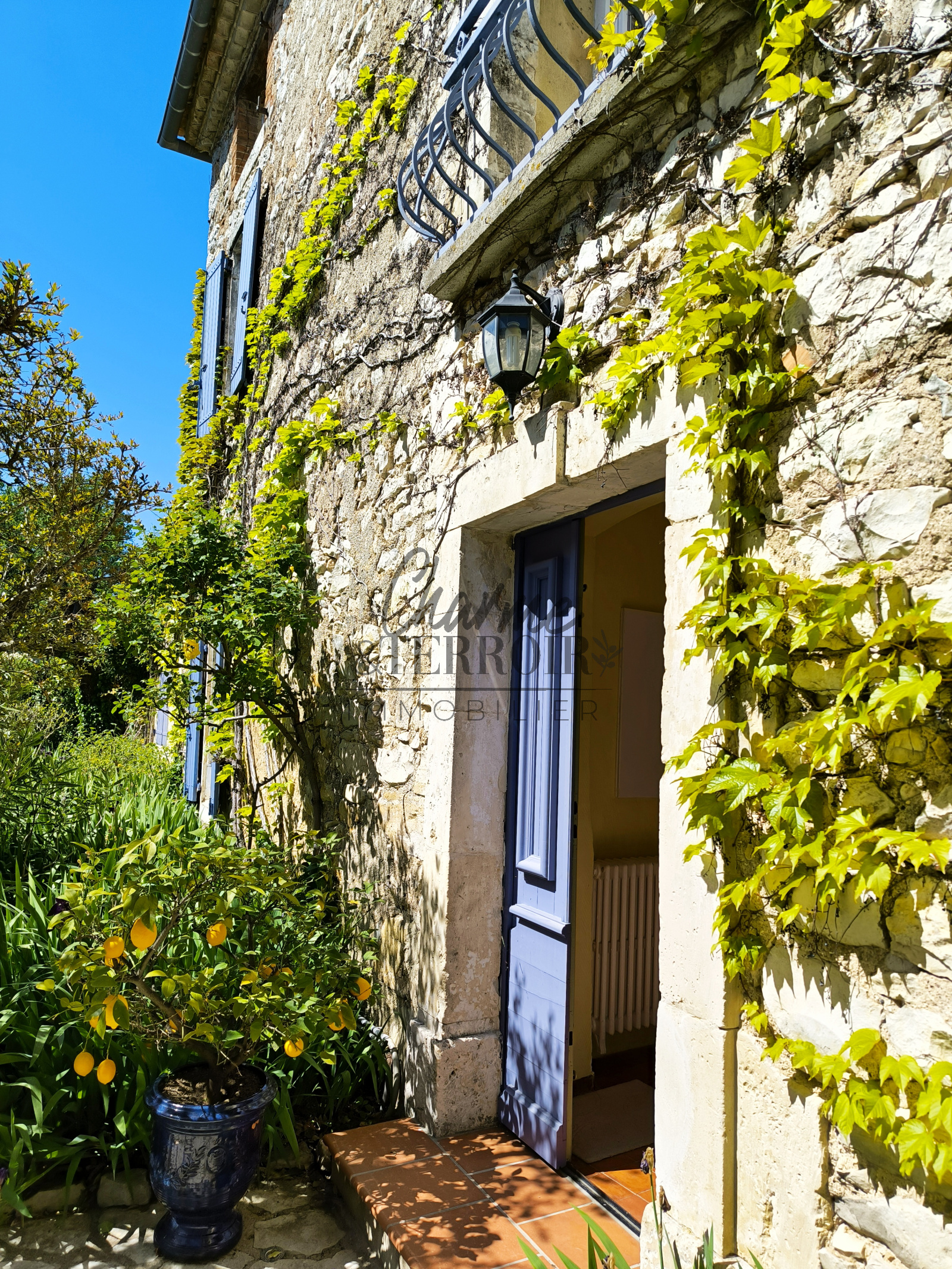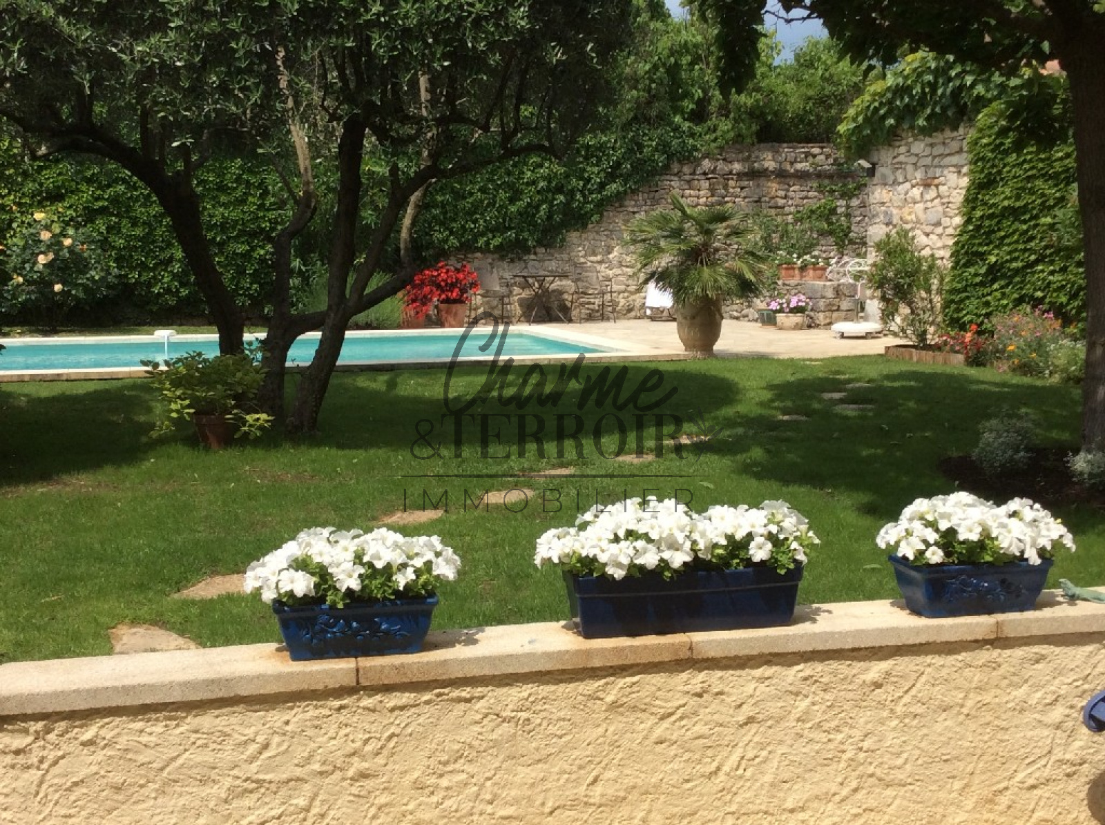 Nord Uzès secteur Lussan, en direction de Barjac, Charme et Terroir Immobilier vous propose cette magnifique maison vigneronne en plein coeur d'un charmant village Gardois tout en pierre. D'une surface de 178m², elle se compose d'une entrée desservant une cuisine équipée, d'un séjour / salon donnant sur une terrasse en partie couverte avec une seconde cuisine équipée et une cheminée, d'une vaste pièce voutée, d'une cave et wc indépendant. A l'étage se trouvent trois chambres, une salle de douche avec wc et un accès à une terrasse solarium. Au dessus un grenier. En dépendances, un atelier, un abri de jardin et un local technique pour la piscine. Le jardin paysager de 1053m² sans vis à vis, abrite une piscine 9 x 4,5 et un car port avec prise pour véhicule électrique. Propriété de charme, aucun travaux à prévoir !