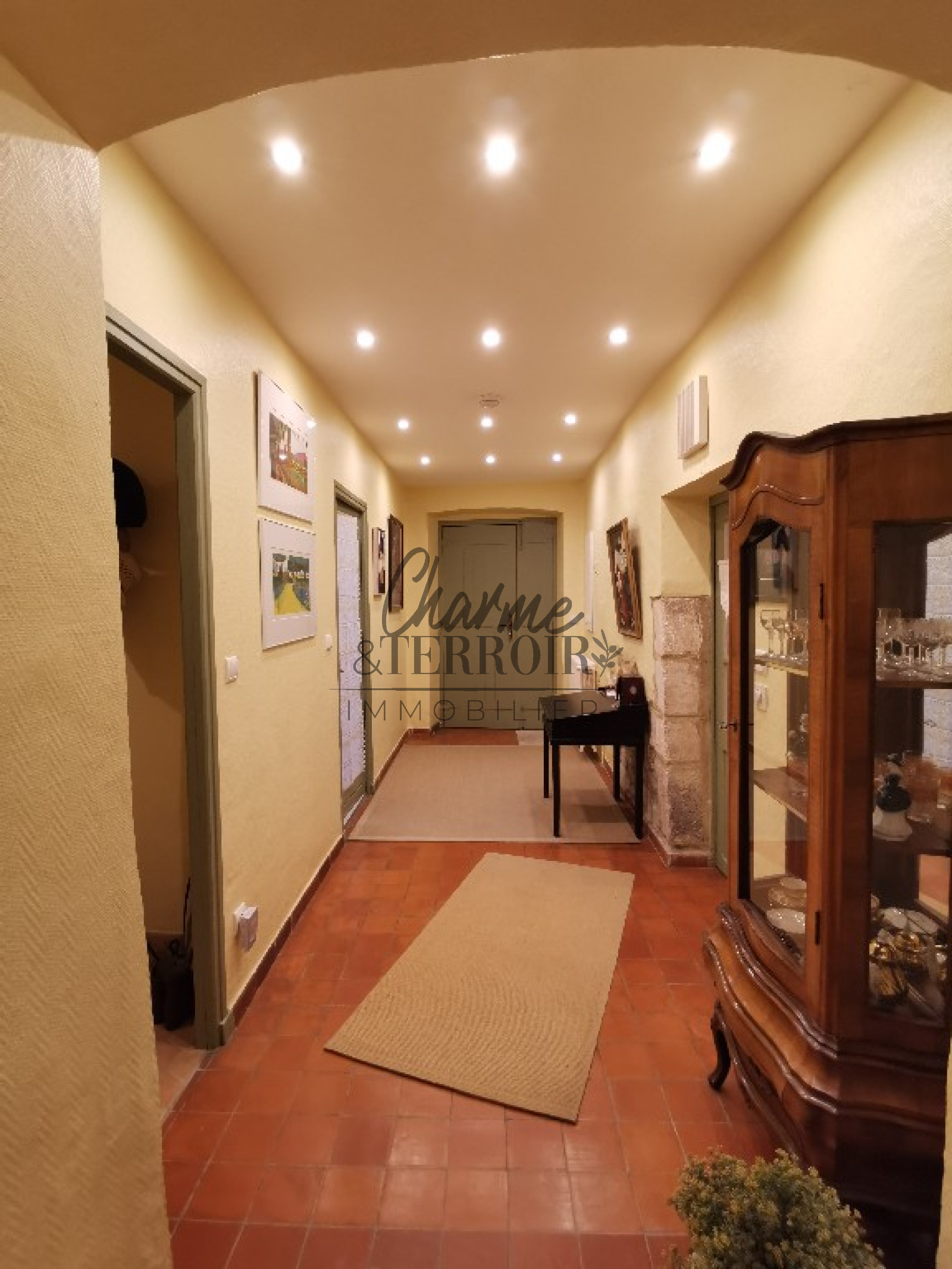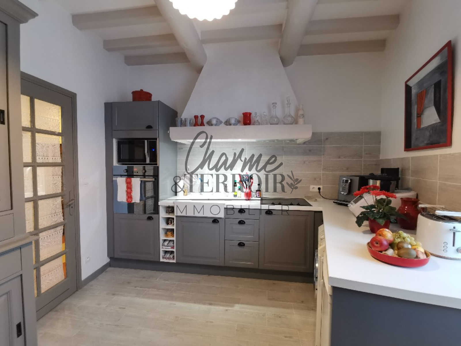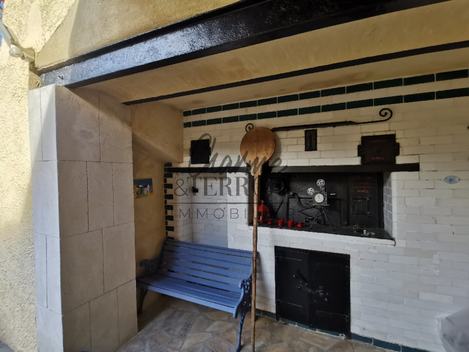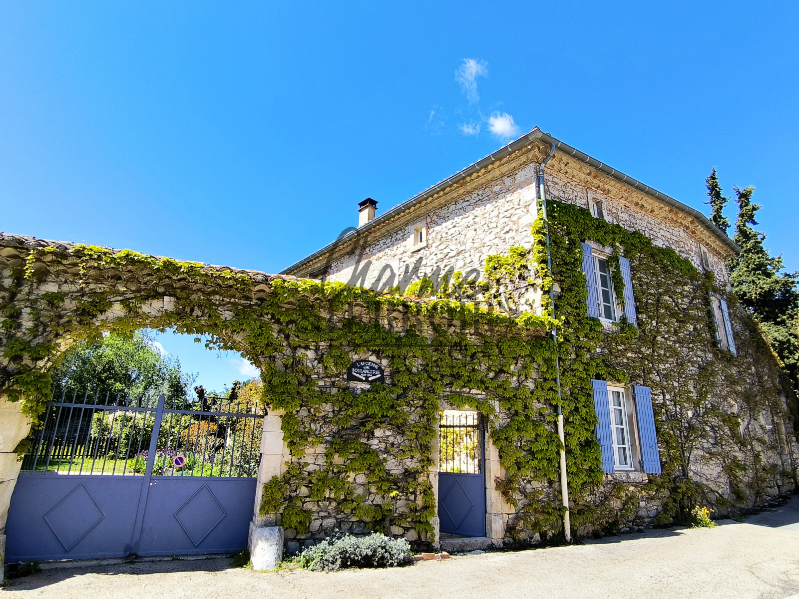 Nord Uzès secteur Lussan, en direction de Barjac, Charme et Terroir Immobilier vous propose cette magnifique maison vigneronne en plein coeur d'un charmant village Gardois tout en pierre. D'une surface de 178m², elle se compose d'une entrée desservant une cuisine équipée, d'un séjour / salon donnant sur une terrasse en partie couverte avec une seconde cuisine équipée et une cheminée, d'une vaste pièce voutée, d'une cave et wc indépendant. A l'étage se trouvent trois chambres, une salle de douche avec wc et un accès à une terrasse solarium. Au dessus un grenier. En dépendances, un atelier, un abri de jardin et un local technique pour la piscine. Le jardin paysager de 1053m² sans vis à vis, abrite une piscine 9 x 4,5 et un car port avec prise pour véhicule électrique. Propriété de charme, aucun travaux à prévoir !