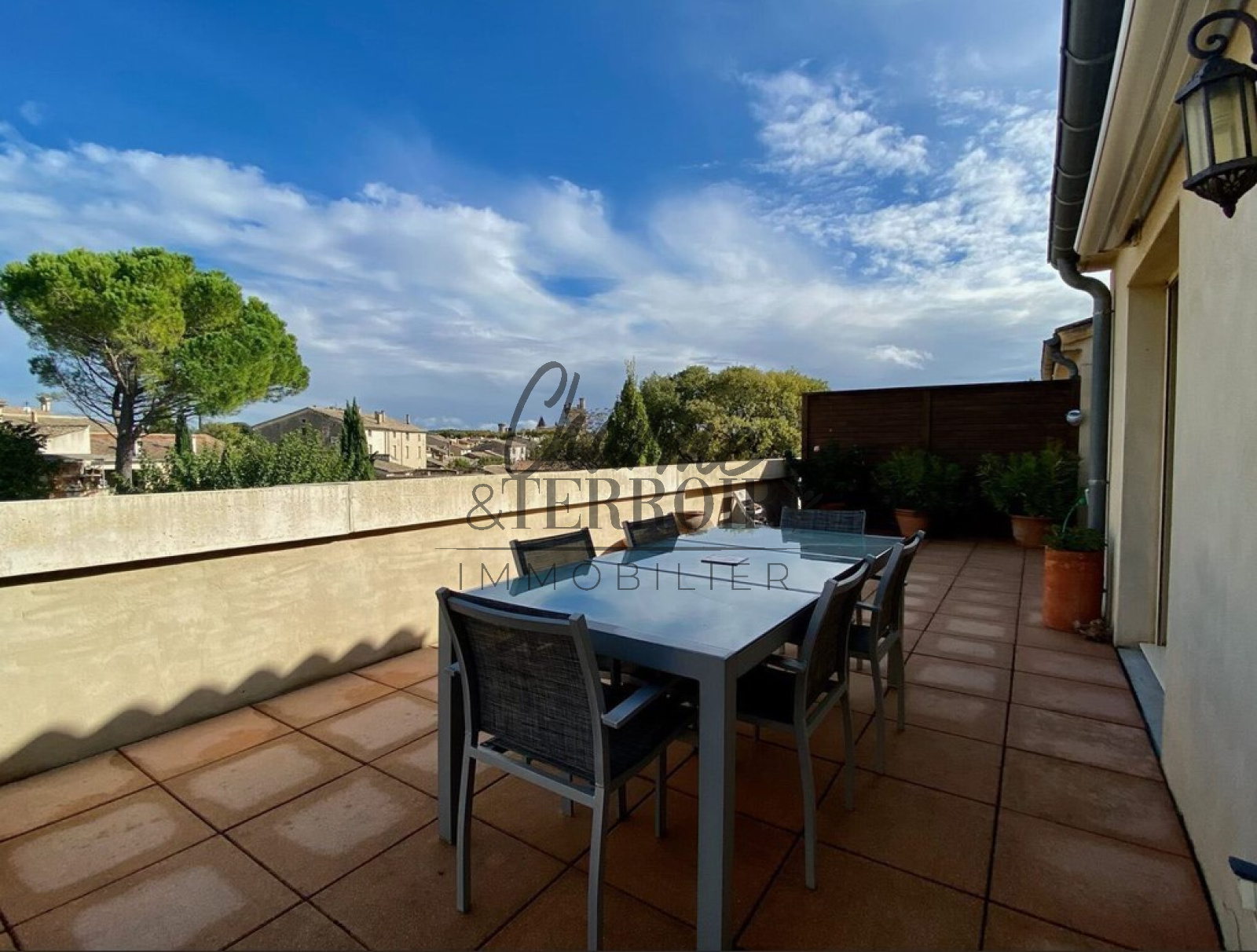 CE BIEN A ETE VENDU PAR NOS SOINS ! Uzès ultra-centre, à 200 mètres de la place aux herbes, magnifique appartement type "penthouse" au dernier étage d'une belle copropriété; Cet appartement possède deux terrasses dont une de 100 m², avec une vue incroyable sur le duché, la tour du Roy, la cathédrale et la tour Fenestrelle. Il est constitué d'une vaste pièce à vivre donnant sur la terrasse, une cuisine ouverte, deux chambres, une salle d'eau et un garage fermé. Aucun travaux à prévoir, belles prestations.! Les informations sur les risques auxquels ce bien est exposé sont disponibles sur le site Géorisques : www.georisques.gouv.fr CE BIEN EST SOUS COMPROMIS