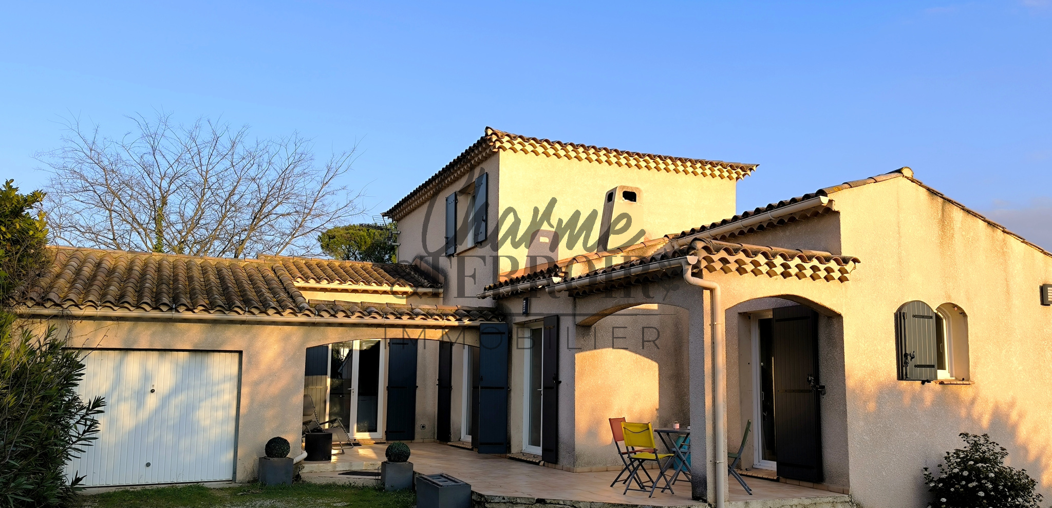 Dans village prisé à 5 km d'Uzès, villa de 100m² sur 2 niveaux édifiée en 1999.